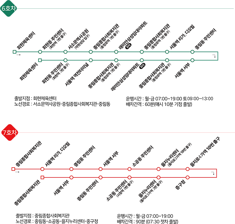 중림종합사회복지관 경유 노선 2개(6호차, 7호차)